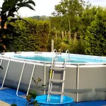 Uteplats, te/kaffebryggare och plattskärms-TV med satellitkanaler samt kaffe/tebryggare, kylskåp och köksredskap finns också här. Separat toalett och dusch finns här.